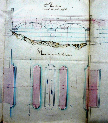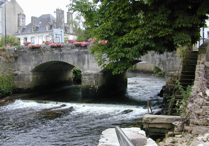 Un premier pont dit également "pont des dominicains" ou "pont saint Dominique" liant, depuis le sud, le faubourg du Bourgneuf à la ville basse, est construit en 1643 par le maître maçon Mathurin Grellepoix (ou Greslepoix), de Quimperlé, d´après le projet de Gilles Moussin (ou Moussain), tailleur de pierre, assisté de son frère Michel. En 1842, l´ingénieur des Ponts et Chaussées Gojard, chargé de sa reconstruction, en fait un dessin qui représente un ouvrage à dos-d´âne de 22 mètres de long et de 5 mètres de large, avec deux arches de dimensions différentes et une pile à bec côté amont. Son mauvais état nécessite une reconstruction avec réemploi de pierres provenant de l´ancien ouvrage. Le nouveau pont à une pile et deux arches, conforme au projet de Gojard, est achevé en 1844. Les parapets sont modernes.