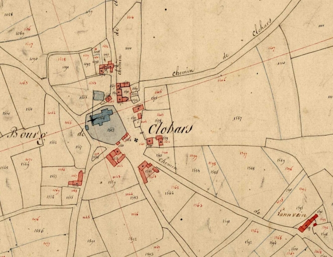 A.D. Finistère, (3 P 101). Extrait du cadastre de 1823, section G3 dite du bourg, échelle 1/2500. De Foresta, préfet, Andouy, maire, Dessaux et Azémar, géomètres.