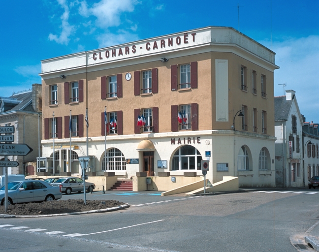 L'hôtel de voyageurs, dit "Hôtel de Carnoët", a été construit en 1931, sur l'emplacement d'une ancienne boulangerie, par l'entrepreneur Lamay de Quimper, d'après les plans de l'architecte lorientais Louis-Marie Dutartre. Leurs noms figurent dans deux cartouches circulaires en béton moulé. Le bâtiment a été transformé en mairie après 1950 et abrite, dans sa partie ouest, un bureau de poste.