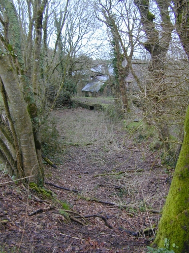 Etang asséché. Bâtiments couverts d'ardoises, à l'exception du moulin, couvert de tuiles mécaniques. Remise agricole avec four à pain en ruines.