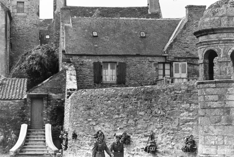 Du côté de la mer, l’agglomération est protégée par les murs de clôture des jardins des maisons. Inspirées des manoirs ruraux, les tours d’escaliers sont dotées de pièces hautes servant de cabinet de travail voire de vigie. Certaines maisons sont vraisemblablement dotées de petites pièces d’artillerie ou d’arquebuses comme le suggère la présence d’ouvertures de tir : de part et d’autre de l’échauguette de la maison dite de Marie Stuart (25 rue Amiral-Réveillère) ou dans la partie basse de la maison du Passage Louis-Noir donnant dans l’anse du port (maison située aujourd’hui le long du Quai Charles de Gaulle). La construction de ces demeures est attribuée à des armateurs qui se livrent à la course, à des négociants ou à des marchands. Ces éléments défensifs participent d’affirmer le statut social des propriétaires.