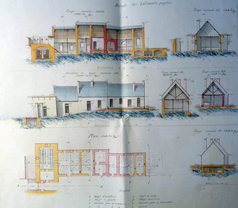 La construction d’un corps de garde type 1846 n° 2 modifié et renforcé pour 30 soldats est proposé en février 1861 avec une batterie de six pièces d’artillerie (cf. plan).