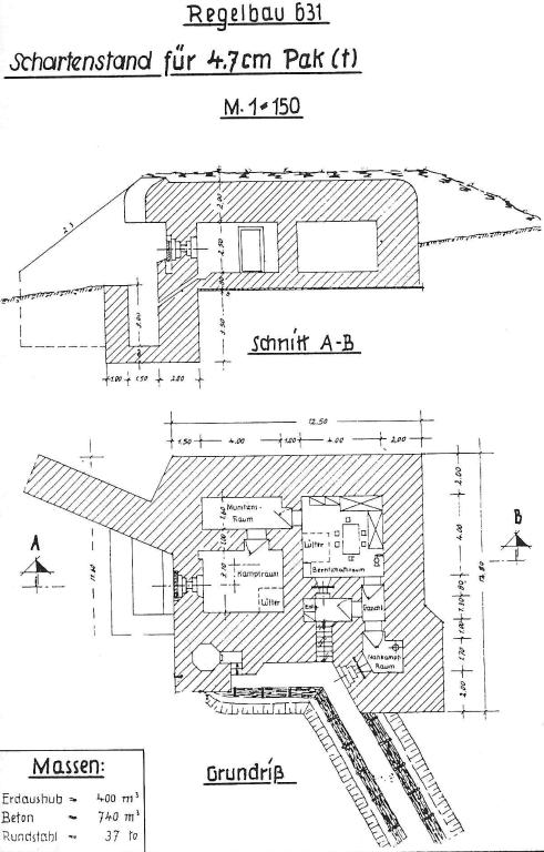 Dalle de couverture et murs périphériques mesurent 2 m d’épaisseur, ce qui place ce type de bunker dans les "constructions permanentes" (Ständig Ausbau), c’est-à-dire à l’épreuve des bombes et étanche aux attaques au gaz.