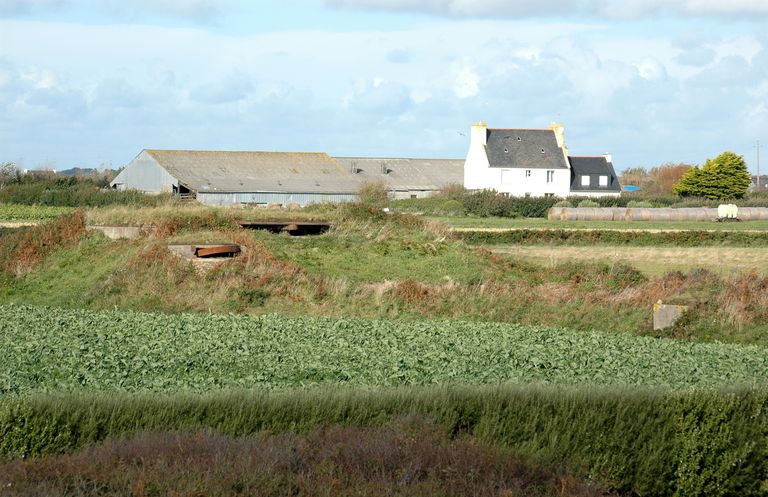 En avril 1942, quatre grandes casemates en béton armé sont construites par le Marine-Bau-Bataillon 360 pour protéger les canons comme l’atteste une date portée. Un bunker - abri de type M145 (1 380 m3 de béton armé) permet de stocker les munitions de 15 cm. Pour la conduite de tir, un bunker - poste de direction de tir (Leitstand) de type M150 est construit (1 050 m3 de béton armé). Un bunker de type M182, pour abriter un projecteur de 1,5 m de diamètre, est implanté à l’aplomb de la falaise immédiatement à l’ouest avec un bunker - abri pour le groupe électrogène alimentant le projecteur en électricité. Situé à 3,5 km à l’est, l’observatoire d’artillerie de construction française de la pointe de Créac’h Meur complète le dispositif ainsi qu’un projecteur baptisé Bruno.