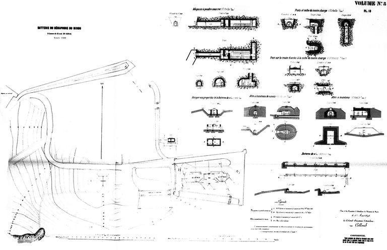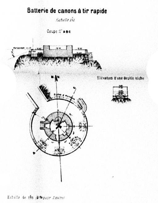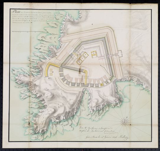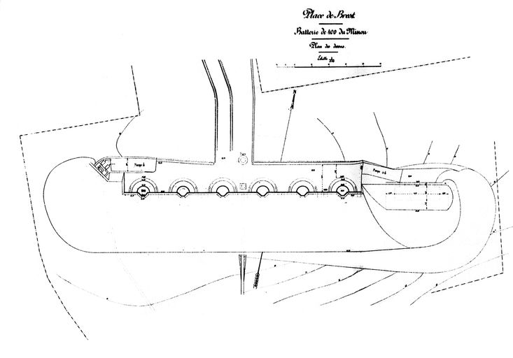 « Le Minou. C’est la batterie la plus avancée du goulet à la grande mer. Il n’y avait que deux pièces de canons et deux mortiers. J’en ai fait ajouter quatre de 36 et y ferai encore mettre deux. On la ferme actuellement par derrière en redoute, la capacité du lieu ne permettant pas d’y faire autre chose ; elle sera fraisée et palissadée, et parce que la batterie serait encore plongée et vue à revers par les hauteurs, j’y ai placé un parados qui couvrira la batterie et ceux qui la serviront, et les mortiers le seraient par la partie du rempart qui sera plus élevé que le parapet des batteries. Les mortiers et le canon de cette batterie verront partie du mouillage de Bertheaume et l’entrée du goulet, elle est très bien placée ». Vauban au roi, 15 juillet 1695.