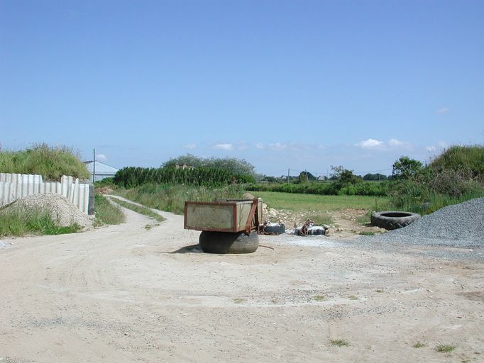 Batterie d'artillerie en cours de construction composée d'une seule casemate et de plusieurs plateformes de tir. Nombreuses soutes à munitions de type M 134. Abris à personels.