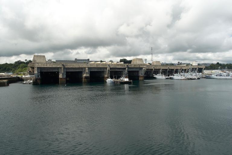 La base de Brest abritait la 1re flottille (Unterseebootsflottille Saltzwedel puis Weddigen, basée à Kiel avant juin 1941) et la 9e flottille (der lachende Schwertfisch ou « espadon rieur ») mais, dès août 1940, arrive dans l’arsenal de Brest l’U65. Ces deux flottilles de combat ont reçu au total 224 unités durant leur service. Les travaux de la base de sous-marins débutèrent au début de l’année 1941 et s’achevèrent en juin 1942 soit, en moyenne, 33 jours par alvéole. L’entreprise allemande en charge des travaux est la maison berlinoise Julius Berger qui fit travailler en sous-traitance l’entreprise française Campenon-Bernard.