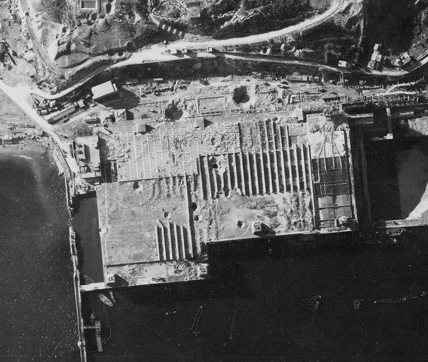 Les normes de construction sont sévères : dalles et murs de 5 m d’épaisseur, cloisons intérieures de 1,5 m et fondations de 2 m d’épaisseur. Par ses dimensions – plus de 333 m de longueur, 192 m de largeur et 5 ha protégés sous béton – c’est la plus importante base de sous-marins de l’Atlantique après Lorient. Plus de 500 000 m³ de béton ont été nécessaires à sa réalisation. Vingt sous-marins pouvaient y trouver refuge en même temps. Environ 10 000 personnes, dont 8 500 requis, travaillèrent sur le chantier. Les matériaux de construction stockés sur le plateau de Kestéria arrivaient par voie ferrée aux Quatre Pompes. Les Allemands font appel à des ouvriers spécialisés, maçons et spécialistes du béton, charpentiers pour les coffrages, mécaniciens et conducteurs d’engins.