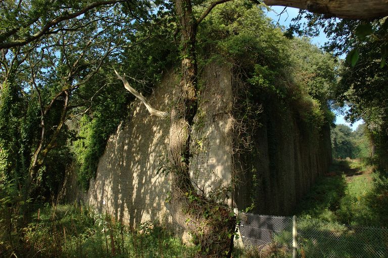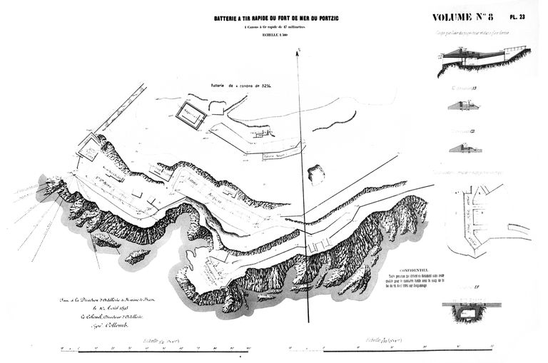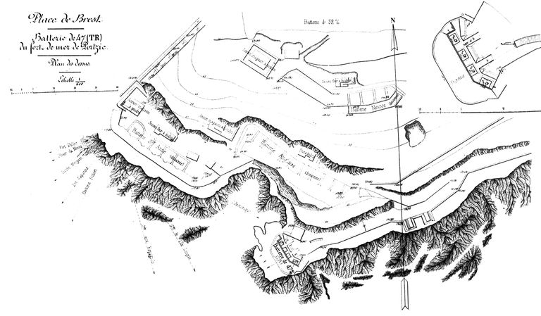 "Jusqu´à la seconde moitié du 18e siècle, la protection terrestre de la batterie du Portzic édifiée par Vauban repose sur les retranchements en terre réalisés dans l´urgence de la guerre de la Ligue d´Augsbourg (1688-1697). Formant la gauche du camp retranché de Saint-Pierre (1776-1784), le fort de terre est alors considérablement renforcé. Son rôle est triple : protéger la batterie côtière du côté de la terre, s´opposer à une attaque terrestre venant de l´est et soutenir le fort Montbarrey au nord.