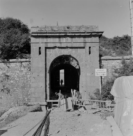 Porte d´entrée : s'ouvre au milieu de la courtine 102-103 (front est) ; dans son projet, Vauban avit prévu l'entrée par le front nord.