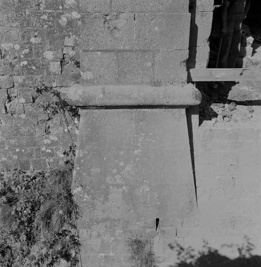 - Embrasures rectangulaires, à joues légèrement divergentes, entaillant le parapet ; seuil monolithique, montants en gros appareil harpé.