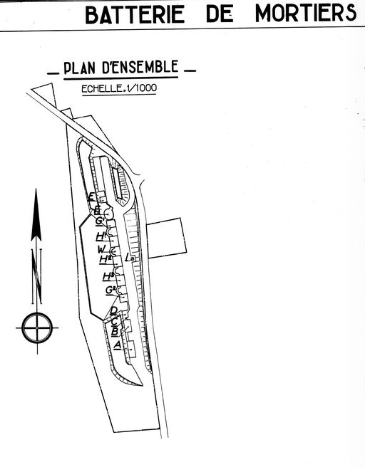 Batterie de mortiers (4 mortiers M. de 30 cm. modèle 1883 sur affûts M modèle 1883 à pivot antérieur puis modèle 1883-T-1893 sur affûts M modèle 1883 à pivot antérieur modifiés), Le Cosquer, Pointe du Grand Minou (Locmaria-Plouzané)