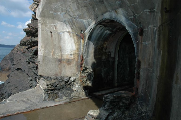 - Une batterie de 4 canons de 32 cm tirant au nord-ouest perpendiculairement au goulet.