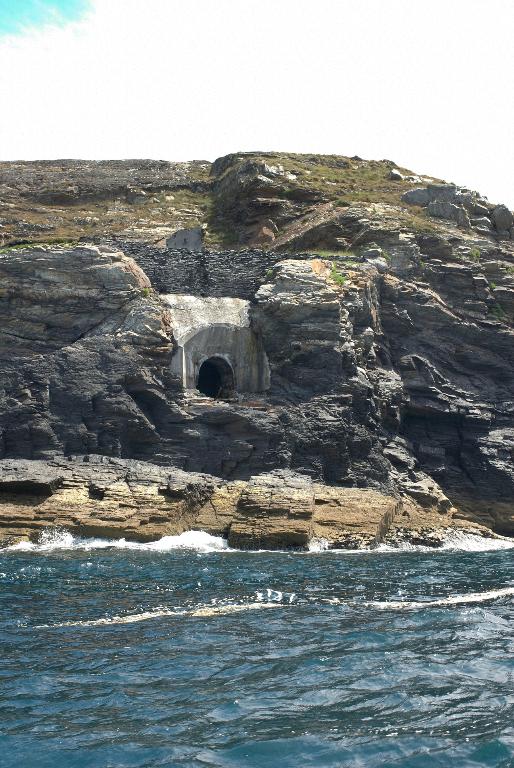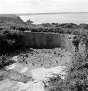 Cuve creusée dans le rocher, au sommet de l'extrémité sud de l'arête centrale de l'ilot reliée à la caserne par escalie à ciel ouvert taillé dans le roc.