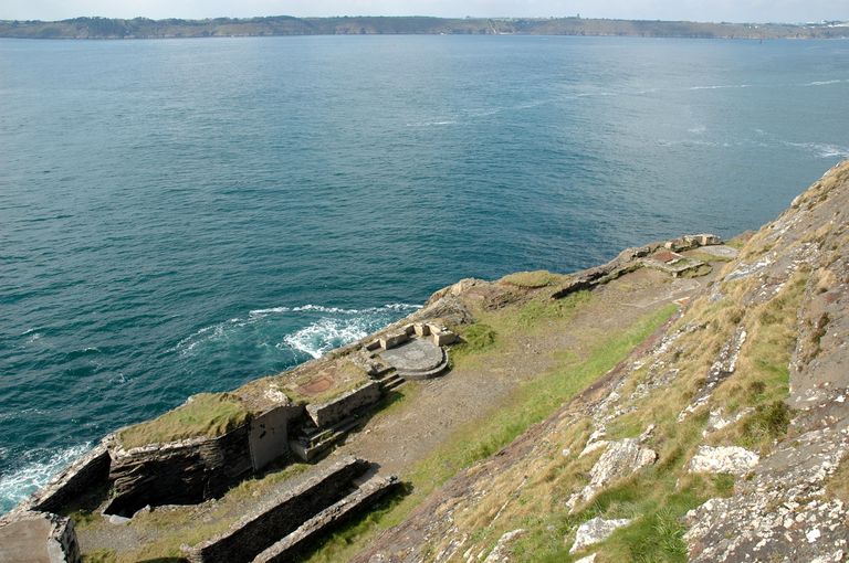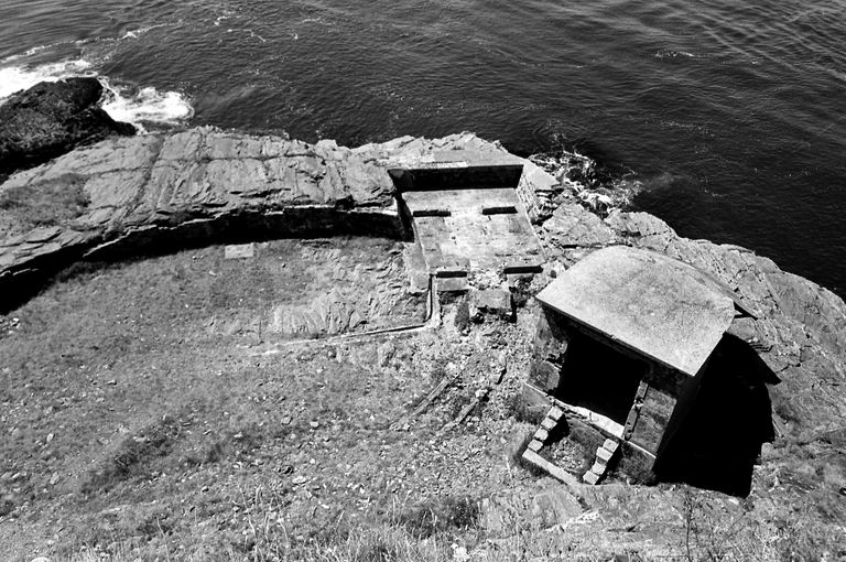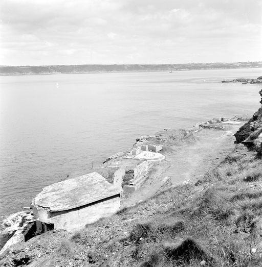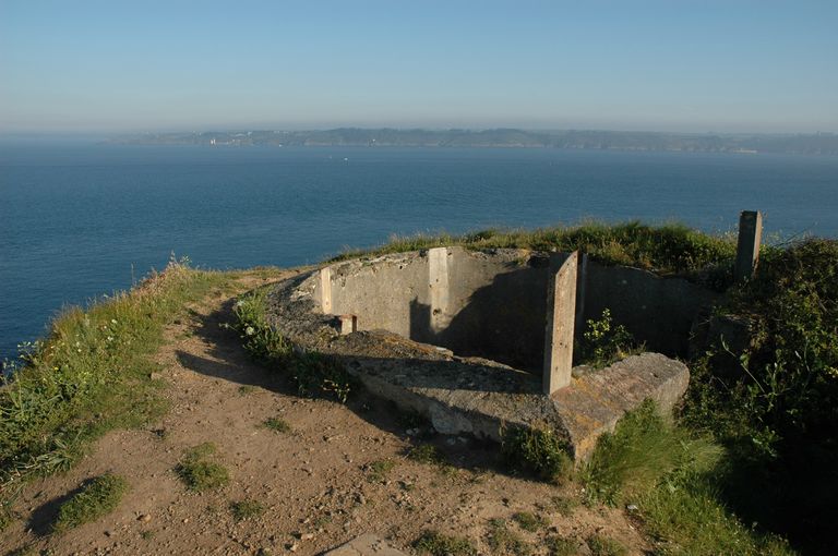 Batteries hautes groupées au sommet des falaises, de part et d'autre de la pointe.