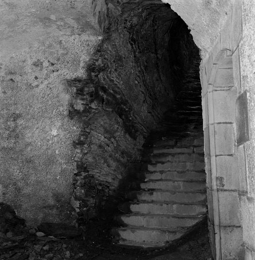 Une galerie d'égoût évacue les eaux des locaux souterrains vers la falaise.