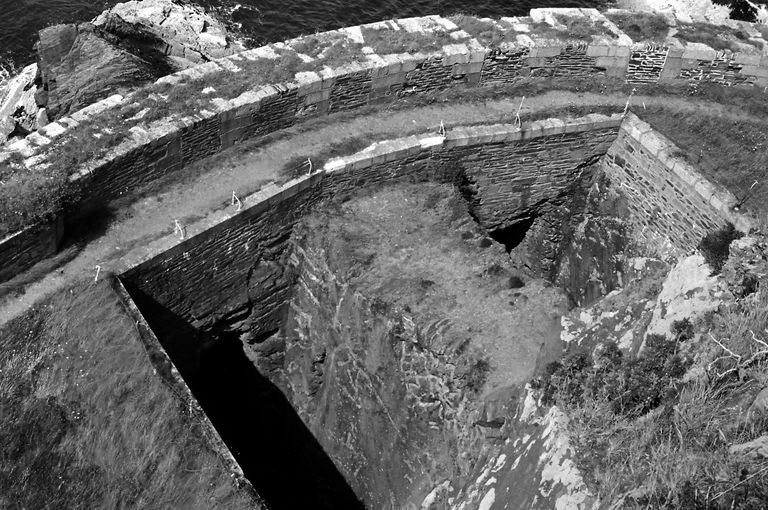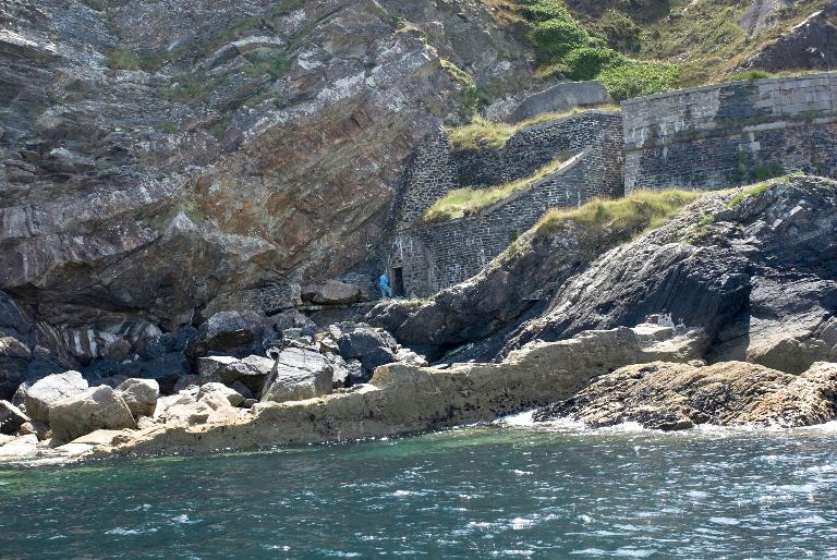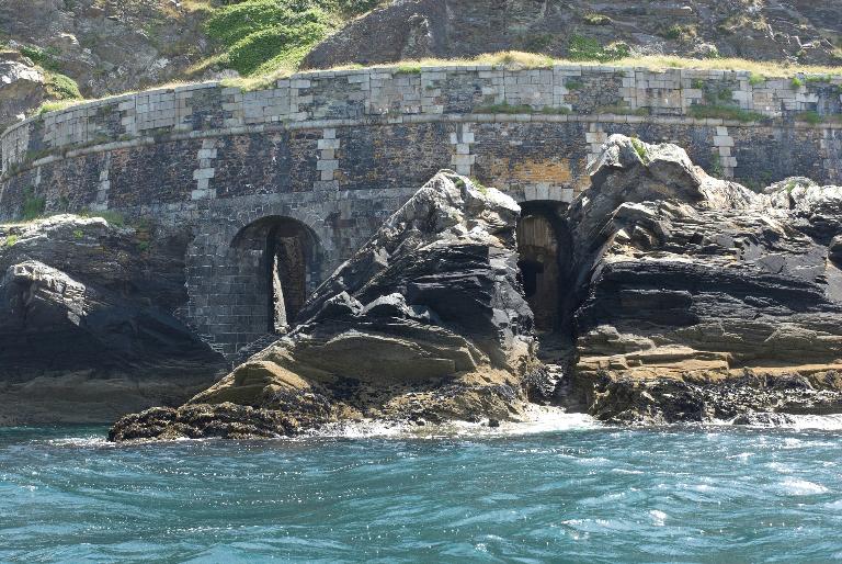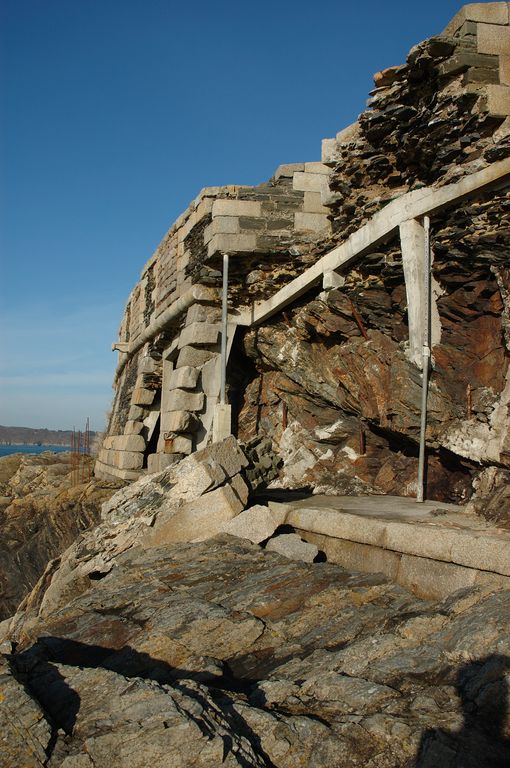 Ouvrage isolé, établi au ras de l´eau, à quelques centaines de mètres à l´Est de la batterie basse. Accès piétons par sentier descendant la falaise - matériel par la mer (petit quai).