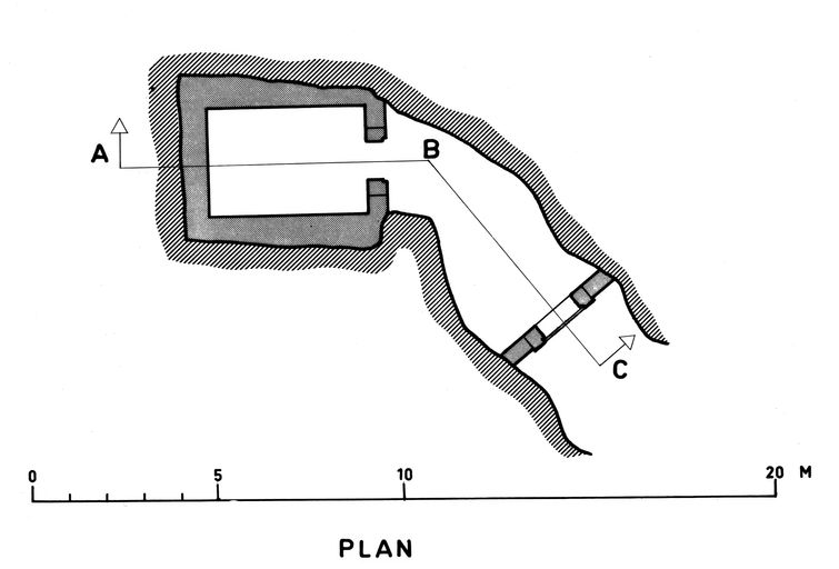 - Un petit couloir d´accès, tracé en baïonnette et traversant la paroi (aboutissement d´une tranchée extérieure).