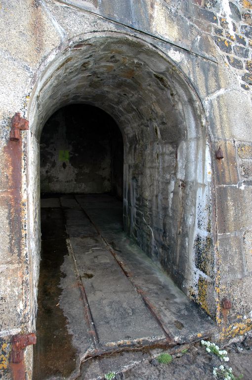 Construite en 1888 sous la falaise, à l´extrémité droite de la batterie basse pour deux canons M de 32 cm Modèle 1870-1884 sous casemate.