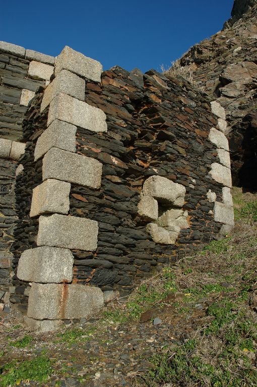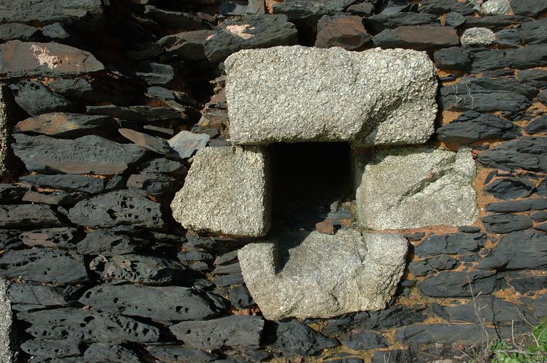 Matériaux : maçonnerie courante, moellons de schiste brun grossièrement appareillés.