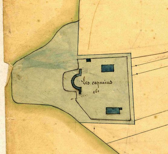 - Au sud, à 500 mètres environ de la pointe la batterie de mortiers des Capucins et ses annexes.