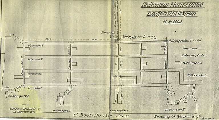 Les bunkers composant le "Stützpunkt Marineschule" ou "U-Boot Haffen" sont numérotés de B 113 à 119. Un réseau de galeries souterraines relie les bunkers.