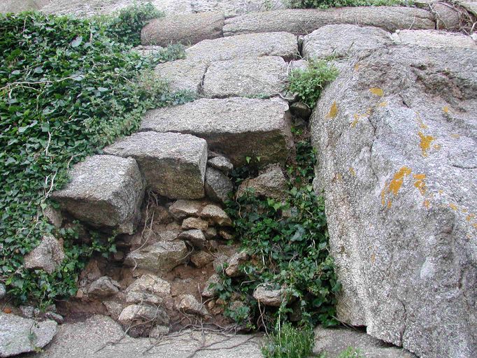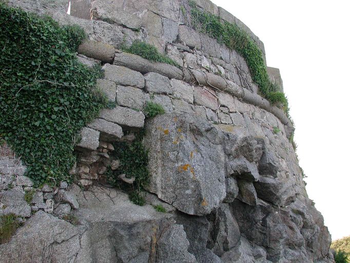 Le dallage de la plate-forme ayant disparu, les gargouilles n'assurent plus leur fonction d'évacuation des eaux pluviales. L'eau s'infiltre désormais directement dans le massif rocheux. Le cordon de pierre de taille - brisé et affaissé - témoigne des désordres importants de la tour. La démolition du blockhaus et la réfection du dallage seraient souhaitables afin de traiter le problème d'infiltration.