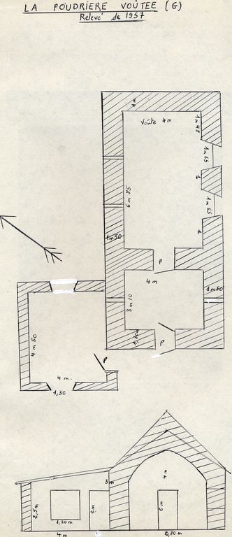 Magasin à poudre construit en 1859 (daté par millésime). Construit en moellon de granite autrefois enduit à la chaux, le bâtiment est voûté afin d'être à l'épreuve d'un bombardement naval. Sur son flanc nord, un mur de terre faisant parados vient le protéger d'un bombardement venu de la mer. Le magasin à poudre du fort Cézon a une capacité de 10 tonnes.