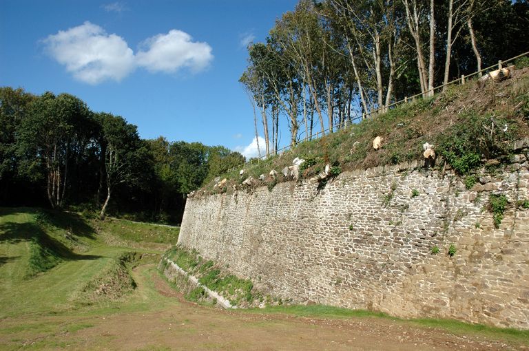 Malgré la grande économie qu´on a eue toujours en vue dans le projet de cet ouvrage, on a regardé comme absolument indispensable de placer une demi-lune sur ce front : il fallait couvrir la porte, et de plus boucher la trouée du vallon. Cette demi-lune produit le meilleur effet, outre les avantages dont nous venons de parler. Sa face droite, par son relief, lit dans les fonds de la Rhédic et la face gauche prendrait à revers les attaques que l´on pourrait diriger sur le plateau de Kervingui [Kervinguy].