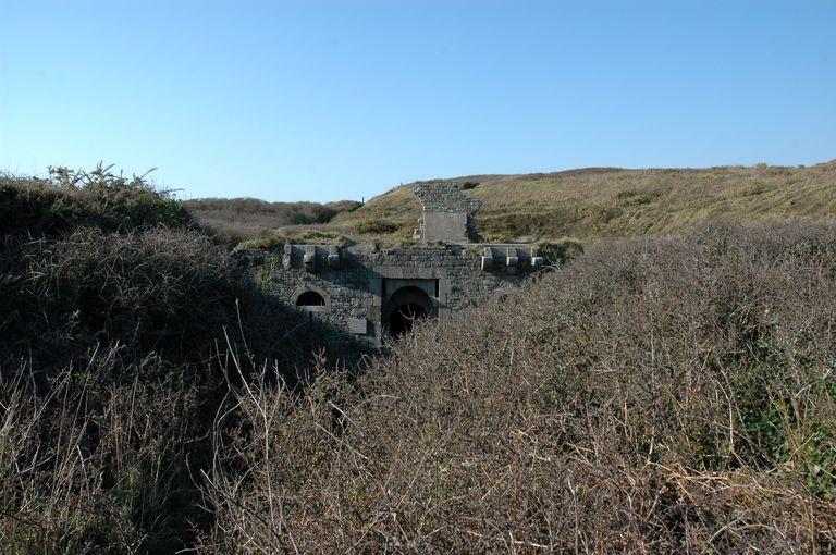 Prioritairement, il s’est agi de mettre en état de défense l’anse des Blancs Sablons dont le dispositif s’étend de l’anse de Porsmoguer au nord (Plouarzel) à la pointe de Kermorvan au sud (Le Conquet). Six ouvrages sont ainsi élevés de 1846 à 1852 et deux redoutes pour l’infanterie sont modernisées (à l’origine, des redoutes vaubaniennes mises en œuvre par l’ingénieur Mollart). La batterie de côte (aujourd'hui disparue) a probablement été déclassé en 1876. Le parapet et les bretèches du corps de garde ont été arasés vraisemblablement pendant la Seconde guerre mondiale. Fonction : défense de la plage des Blancs Sablons.