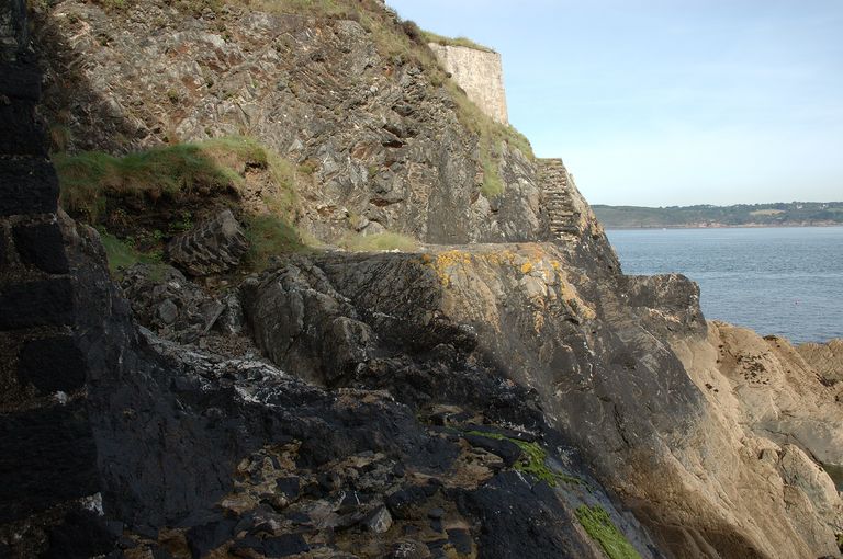 Capucins, Cornouaille, Robert, Pourjoint et Espagnols, mais leur accès est souvent périlleux. Compte tenu des difficultés d´accès (tant en approche d´un édifice situé au ras-de-l´eau, qu´en descente dans l´édifice même), la batterie de rupture casematée de Cornouaille, dépourvue d´escaliers mais dotée d´une rampe légèrement inclinée, présente la plus grande accessibilité pour une éventuelle mise en valeur. De plus, cette batterie de rupture casematée a vu ses deux axes de tir délardés par déroctage de la falaise située sous la plate-forme de la batterie vaubanienne, et deux arcs de décharge réalisés dans le parement ancien. L´ensemble constitue un exemple aussi saisissant que pédagogique de réutilisation d´une même position à 200 ans d´intervalle" (Lécuillier Guillaume, 2011).