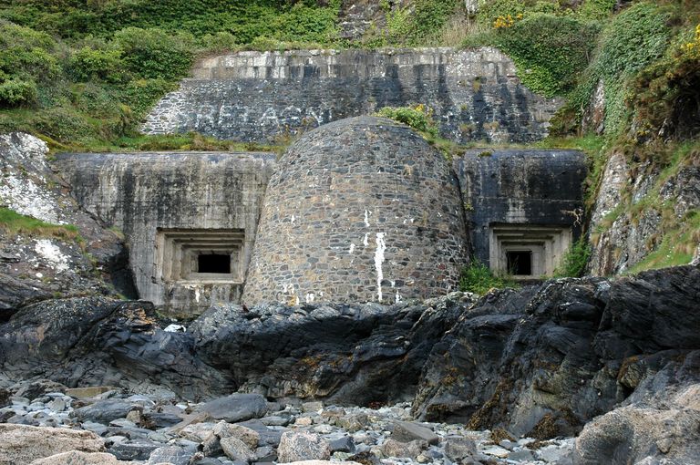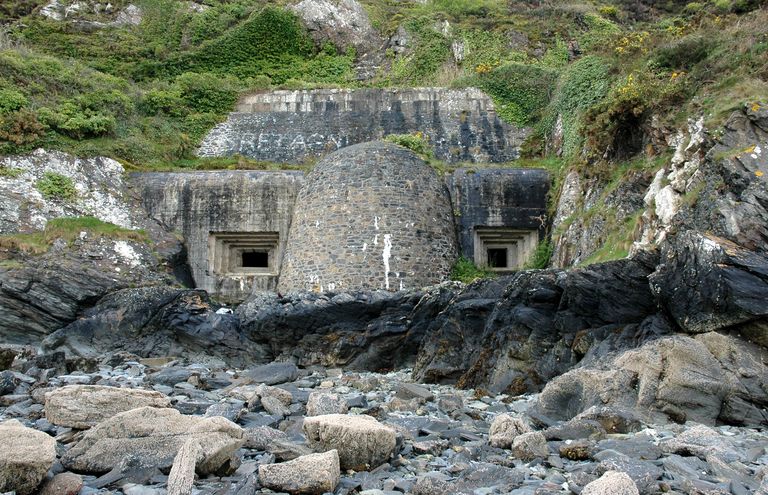 gigantesques de déroctage. Les batteries de rupture casematées du goulet de Brest sont désarmées en 1915 et 1917 92 afin de fournir des pièces d´artillerie pour le département de la Guerre (artillerie lourde sur voie ferrée destinée au front terrestre). Il fut un temps envisagé de réarmer ces batteries casematées à l´aide de torpilles automobiles mais le projet resta dans les cartons. Lors de la Seconde Guerre mondiale, deux batteries de rupture casematées (à Pourjoint et à la pointe des Espagnols) sont coiffées par des casemates en béton et réarmées par des pièces antichars de 5 cm de calibre dont une était encore en place en 1969 93 tandis que deux postes de lancement de torpilles sont créés ex nihilo entre les pointes de Cornouaille et Robert.