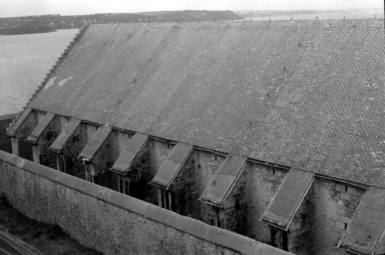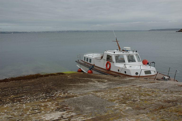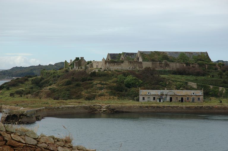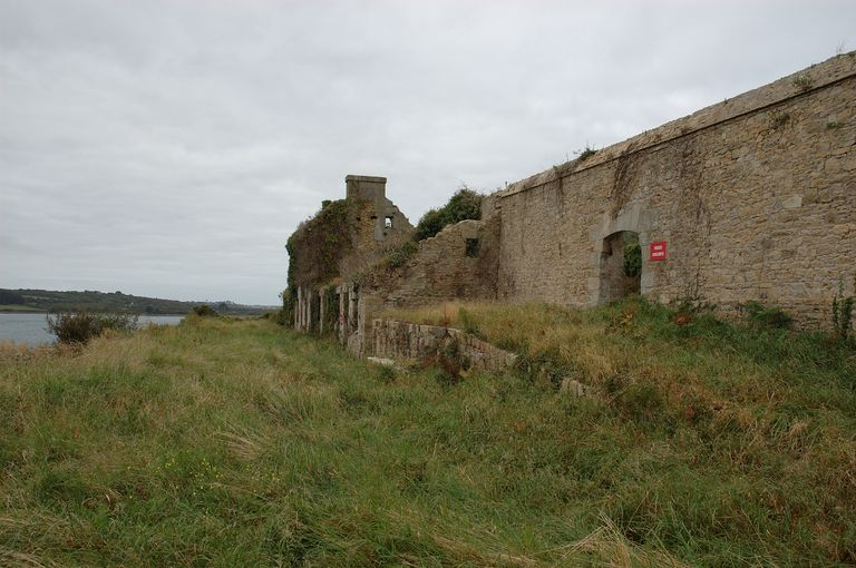Étroitement liée à l´île Trébéron toute proche, l´île des Morts servit longtemps de cimetière pour le lazaret, d´où son nom. Conçu par l´ingénieur Jean Tarbé de Vauxclairs en 1807, alors directeur des Travaux maritimes à Brest, cet ensemble architectural situé sur un îlot de la baie de Roscanvel à 9,5 km du château de Brest se compose à l´origine de trois grands magasins à poudre en tout point identiques, isolés dans une double enceinte quadrangulaire dotée de guérites aux angles, d´une maison de gardien et de ses annexes adossées au mur d´enceinte, de deux rampes inclinées, de deux aires de chargement, de deux rampes d´accès (afin d´éviter manoeuvre et croisement) dont l´une est datée par chronogramme de "1814" et de plusieurs cales permettant le débarquement et l´embarquement des hommes et des barils de poudre. Une caserne a également été construite face à la cale est.