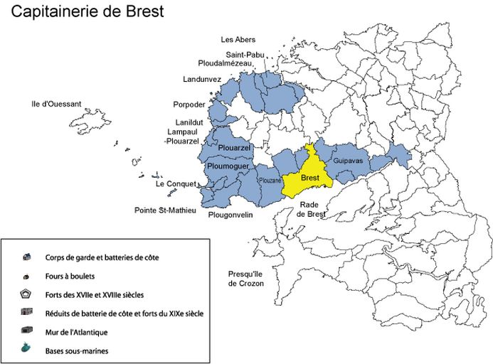 Depuis la fin du 16ème siècle, les milices garde-côtes assuraient la défense des côtes de France contre les descentes ennemies en assurant le guet de la mer. Les populations littorales et insulaires étaient enrégimentées pour surveiller perpétuellement une portion de la côte proche de leur paroisse. Le littoral breton était divisé en capitaineries sous l´autorité d´un capitaine général. « La capitainerie était une subdivision territoriale utilisée pour la milice garde-côtes, intermédiaire entre l´évêché - considéré comme circonscription administrative et non uniquement ecclésiastique - et la paroisse - de laquelle les communes ont repris les attributions administratives. » En 1756, le duc d'Aiguillon souhaitant transformer la milice garde-côtes a divisé le littoral breton en vingt capitaineries d'un bataillon chacune ; c´est sur cette division du littoral que nous nous baserons pour fixer les limites géographiques des capitaineries. Notre étude sur les fortifications des côtes du Nord Finistère et des Côtes-d´Armor ne comprend que les paroisses - communes - littorales des capitaineries.