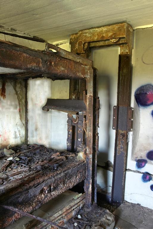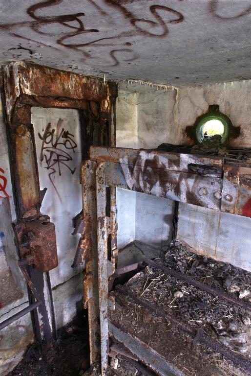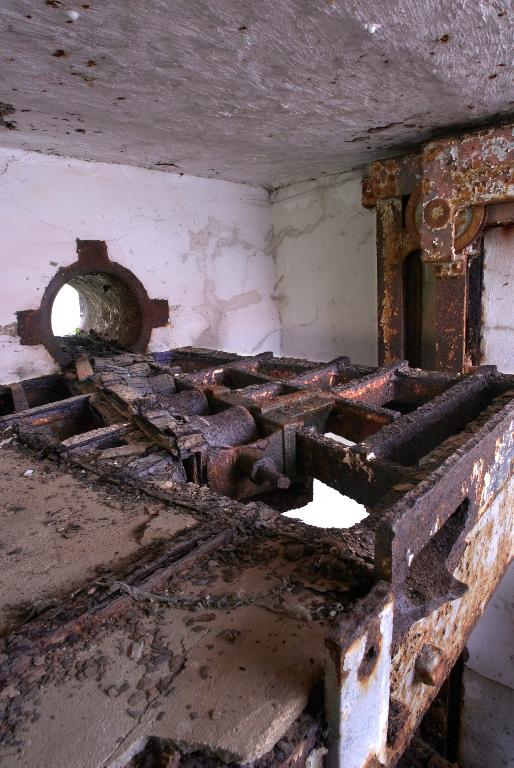 Construite vers 1904, elle était armée de 4 canons Guerre de 240mm modèle 1903 à tir rapide d´une portée de plus de 9 km. Ultra-moderne pour l´époque, ses canons permettaient de diminuer le nombre de servants (6 par pièce) tout en augmentant sensiblement la cadence de tir (2 coups à la minute). Les magasins bétonnés de combats modèle 1901 sont dotés chacun d´un monte-obus à manivelle (l´obus pesait environ 160 kg !) destiné à alimenter le guichet latéral extérieur via un passage sur galets à travers l´épaisseur du mur. Ce dernier distribue ensuite les munitions par un wagonnet sur voie ferrée semi-circulaire de 40 cm d´écartement. Les compartiments à projectiles sont séparés des magasins aux gargousses (charge de propulsion) disposés au centre des magasins doubles ou aux extrémités des magasins simples. Les canons sont toujours en place en juin 1940 et seront réutilisés par l´occupant allemand. Des canons de 75mm les remplacent ensuite, ce qui entraîne des modifications : surélévation des plates-formes, création d´un masque bétonné derrière chaque pièce et des travaux sur le poste de commandement ouest.