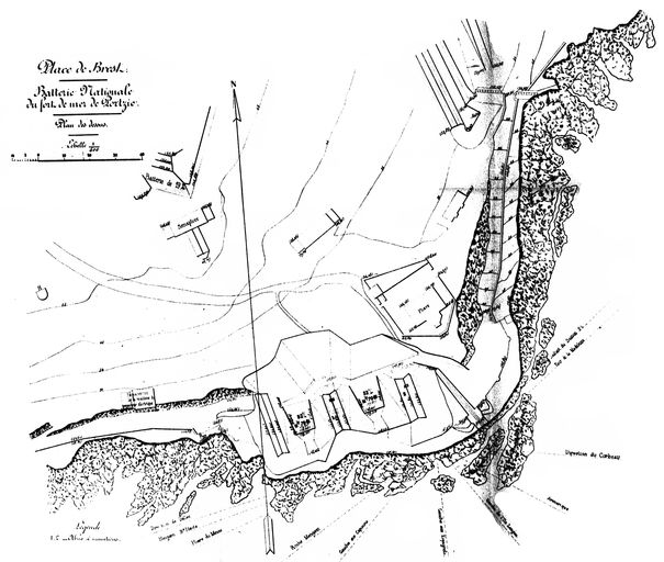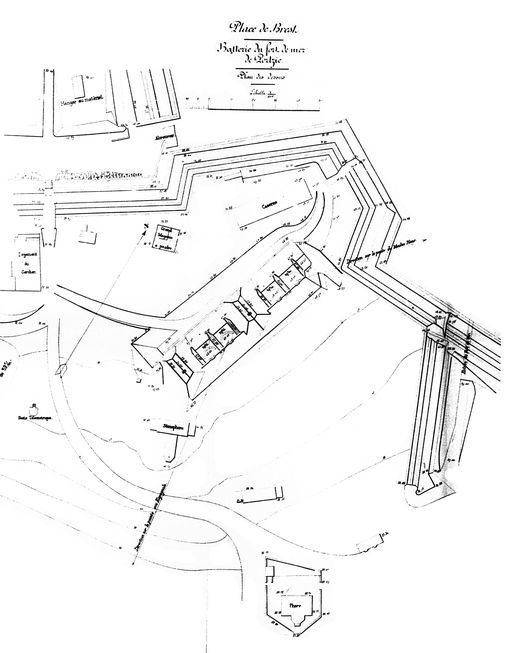 Quatre lignes de feu faisant barrage sont dès lors définies : Minou-Capucins, Mengant-Cornouaille, Dellec-Robert/Stiff, Portzic-Pourjoint/Espagnols. Si l´implantation de telles batteries de rupture à ciel ouvert est rendue possible par la configuration des lieux dans les "ravins" du Mengant, du Dellec, du Stiff et sur la pointe du Portzic directement située face à l´entrée du goulet (batterie Nationale), il n´en est pas de même sur des sites de falaise, notamment sur la côte sud du goulet. Après de nombreuses tergiversations des autorités militaires, une première batterie casematée est aménagée, à titre expérimental, au ras de l´eau dans la falaise sur la pointe du Portzic en 1883.