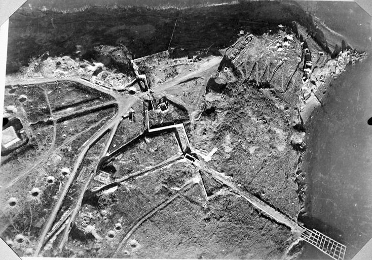 Batterie de rupture casematée (2 canons M de 32 cm modèle 1870-1884 sur affûts M modèle 1888) puis casemates (2 canons antichars de 5cm Kwk) (Cr 43), Pourjoint, au ras de l'eau (Roscanvel)