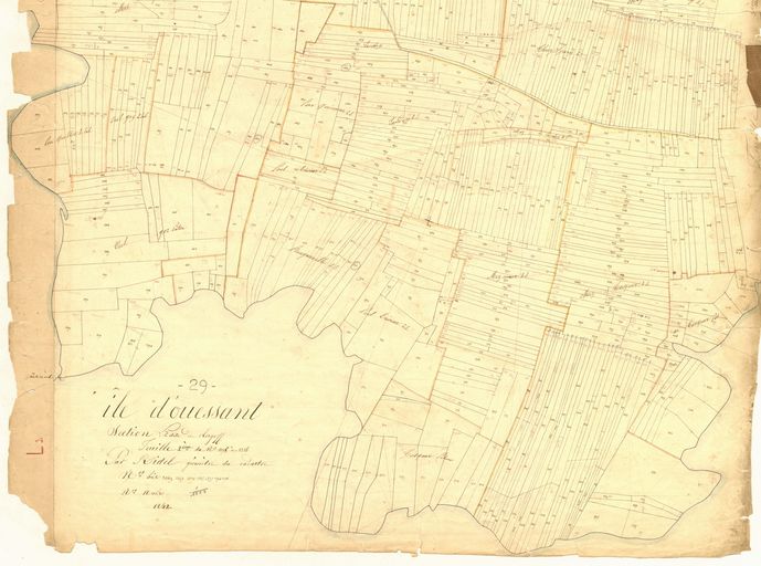 Batterie de côte (en équerre), corps de garde et magasin à poudre (détruits) de Porsguen (Ouessant)