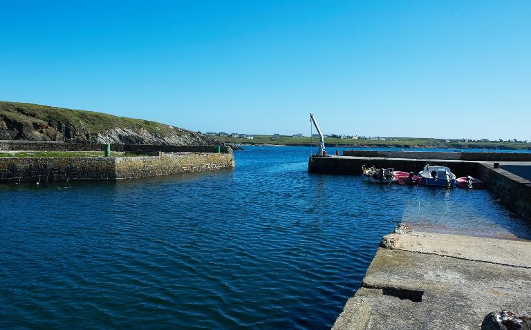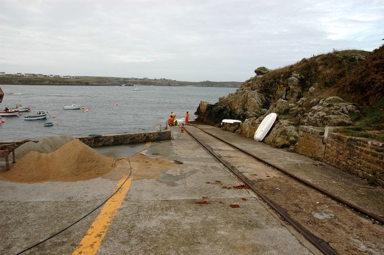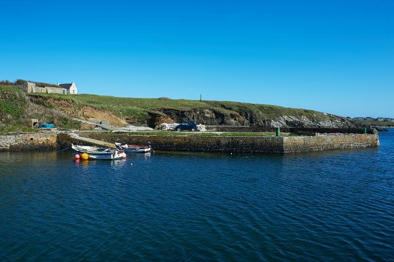 3 phases de travaux sont comptabilisées : en 1761, la crique est barrée par un môle constitué de blocs posés à sec (45 mètres de longueur, 8 mètres d'épaisseur et 6 mètres de hauteur). Un mur est construit en 1851 sur un soubassement rocheux. Le quai et la cale d'accostage ont été construits entre 1860 et 1863, lors de la construction du phare du Créac'h. Les pierres sont d'extraction locale. Les infrastructures sont complétées par la station de sauvetage (1884).
