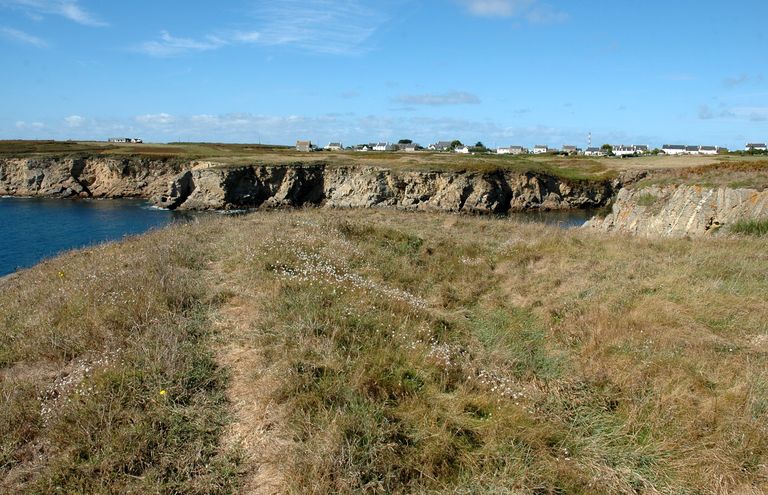 Batterie de côte (en équerre), corps de garde et magasin à poudre (détruits) de Porsguen (Ouessant)
