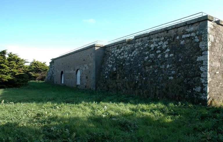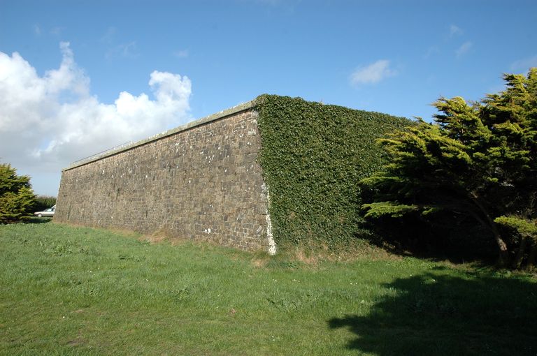 Prioritairement, il s’est agi de mettre en état de défense l’anse des Blancs Sablons dont le dispositif s’étend de l’anse de Porsmoguer au nord (Plouarzel) à la pointe de Kermorvan au sud (Le Conquet). Six ouvrages sont ainsi élevés de 1846 à 1852 et deux redoutes pour l’infanterie sont modernisées (à l’origine, des redoutes vaubaniennes mises en œuvre par l’ingénieur Mollart). Le dispositif de défense combine l’action des batteries de côte, des retranchements, des redoutes et de troupes mobiles. Les trois premières redoutes datant de la fin du 17e siècle ont été largement reconstruites au milieu du 19e siècle comme l'atteste l'entrée. De plan carré, cette redoute était destinée à 32 hommes. La "batterie de Treize" était dotée de 4 pièces d'artillerie en 1858.