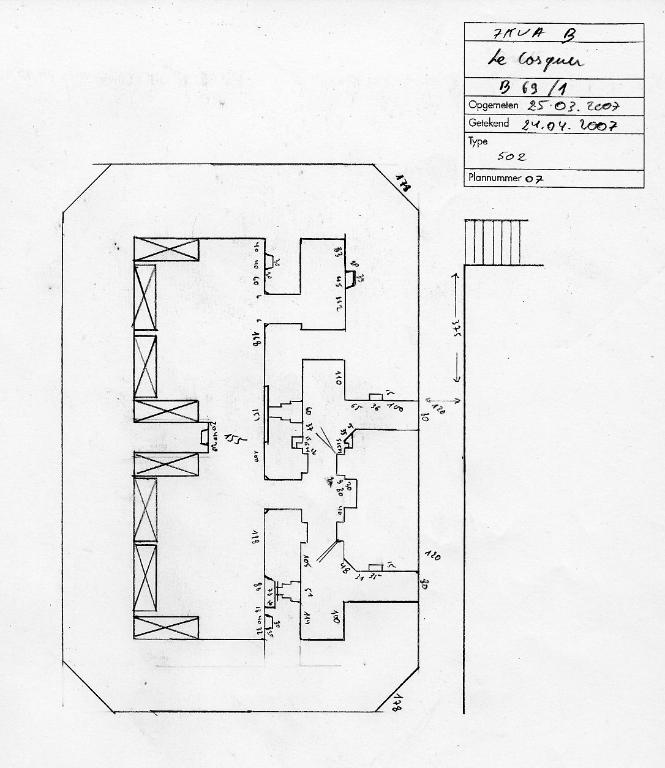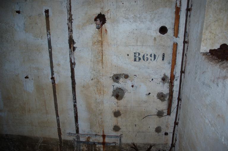 Numérotation du bunker "B 69/1" située au-dessus du boîtier de connexion téléphonique (boîtier disparu entre 2003 et 2005).