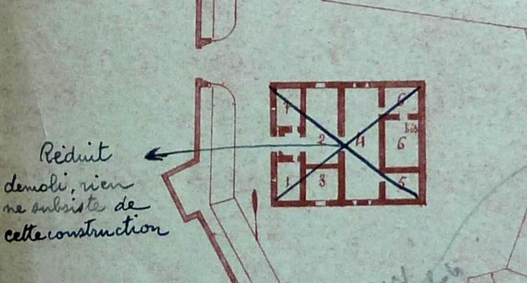 - Corps de garde crénelé n° 2 pour 40 hommes, deux bretèches par côté. L'armement " régulier " consiste en 8 canons.