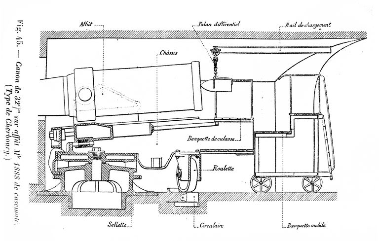 "Afin de rendre le goulet définitivement infranchissable à une flotte ennemie, l´implantation de batteries dites de rupture armées de canons de gros calibre est étudiée dès 1876 par la commission mixte de Défense des côtes. "Le tir de rupture a pour objet la perforation des murailles cuirassées des bâtiments, en vue de les atteindre dans leurs parties essentielles situées au-dessus de l´eau (ligne de flottaison, artillerie de gros calibre, appareils à gouverner, etc.). Il exige une vitesse de choc et une force vive très considérables".