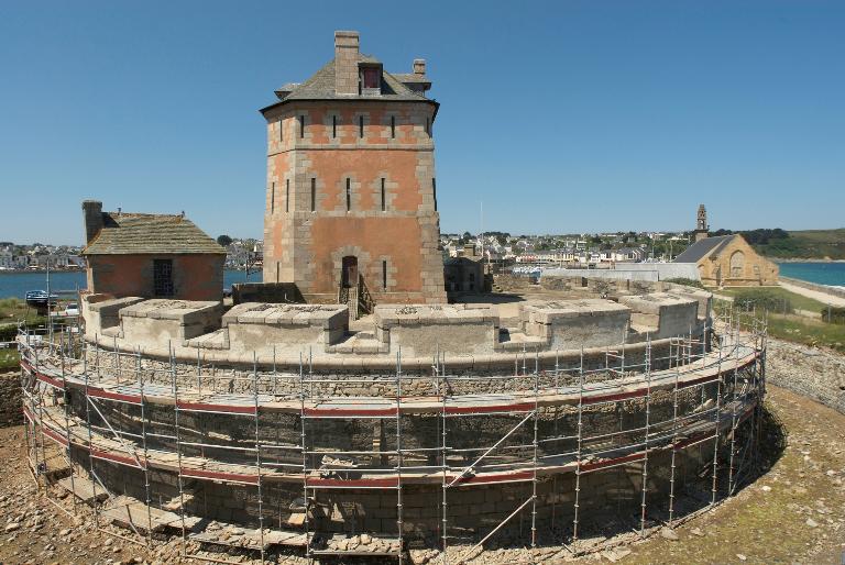 Ainsi, à la fin du 17e siècle, trois grands pôles concentrent la majeure partie des ouvrages de fortifications : Brest, la ville-arsenal, Saint-Malo, le port transatlantique devenu cité-corsaire et le havre de L'Orient/Port-Louis, s'étendant au sud jusqu'à la presqu'île de Quiberon et comprenant les îles de Hoedic, Houat et surtout Belle-Île. Sur un littoral breton de plus de 2 600 kilomètres, le nombre de points-forts - comprendre ici les ensembles fortifiés, du simple corps de garde à l'enceinte urbaine en passant par les forts et batteries de côte - est relativement stable au cours d´un vaste 18e siècle, de l´ordre de 350 dont près de 30 % sont situés dans les îles formant une la "contre-escarpe insulaire" comme le suggère J. Le Corre : ainsi Cézembre, l´archipel de Bréhat, celui des Sept-îles, Batz, Cézon, Ouessant, Molène, Groix, Belle-île, Houat et Hoedic, etc... (En 1779, un Etat des défenses côtières du royaume recense encore en Bretagne 342 ensembles fortifiés, rassemblant 1 390 canons, soit une moyenne de 4 pièces d'artillerie par site ; Service Historique de la Défense, Bibliothèque du Génie, MR 1091, côtes de l´Océan.).