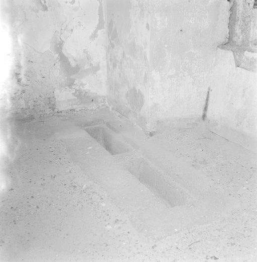 - Un passage couvert sud-nord, voûté en plein cintre, dont l' extrémité nord a été écrasée par une bombe d'avion. Ce passage couvert dessert le magasin à poudre.
