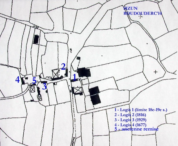 Ce village isolé était composé d'au moins quatre exploitations agricoles. La structure actuelle est encore, pour l'essentiel, identique à celle de 1812. Quatre logis bâtis entre la seconde moitié du 17e siècle et 1929 ont été repérés. La famille Guénan fait construire un nouveau logis en 1929 en déclassant l'ancien daté 1662 qui a disparu à une époque récente.