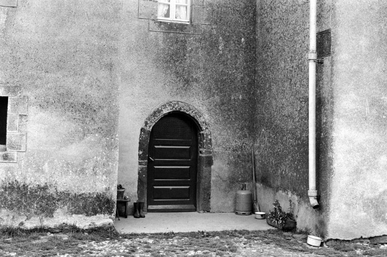 Ensemble composé de trois logis disposés en alignement. Les logis ouest et central sont pourvus d'escaliers de distribution extérieurs jouxtant des avancées. Le logis ouest possède deux avancées à étage, l'un couvert d'un toit rampant, l'autre d'un toit en bâtière.