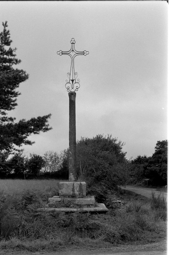 Croix située sur le bord de l'ancienne route nationale 164 liant Angers via Carhaix à Landerneau, ce dernier tronçon correspondant à une voie romaine. Emmarchement, base et partie inférieure du fût en schiste et en granite, probablement 19e siècle. Croix en fer forgé peint probablement seconde moitié 19e siècle. Cette croix remplace une croix plus ancienne figurant sur le cadastre de 1812. Croix restaurée en 1999.