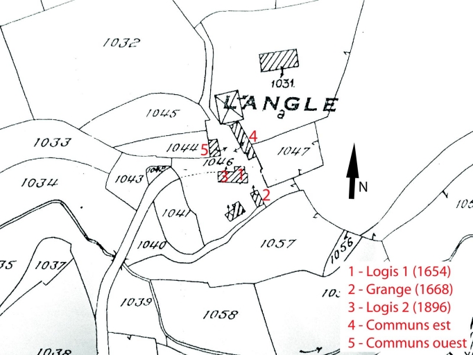 Ancienne ferme ou maison de marchand. Une ancienne buanderie figurant probablement sur le cadastre de 1812, mais disparue aujourd'hui, plaiderait en faveur d'une activité toilière dans ce lieu. Logis 1 daté 1654. Grange avec pierre de remploi figurant un calice sculpté et la date 1668. Les communs nord ont été reconstruits sur l'emplacement d'un bâtiment figurant sur le cadastre de 1812. Logis 2 daté 1893.